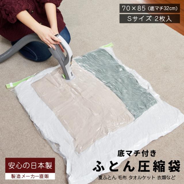 布団圧縮袋 Sサイズ 2枚入 簡易包装 毛布・タオルケット用 ふとん圧縮袋 バルブ式 品質保証の日本製