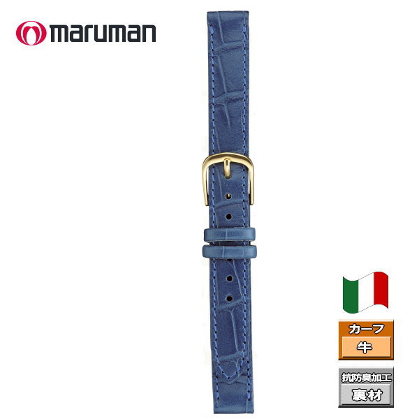 時計ベルト 時計バンド 時計際幅 12mm 美錠幅 12mm イタリアンカーフ 型押しワニ 紺 ネイビー バネ棒2本付き DM便対応品(代引き不可)