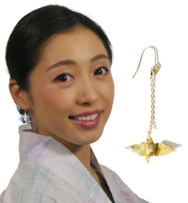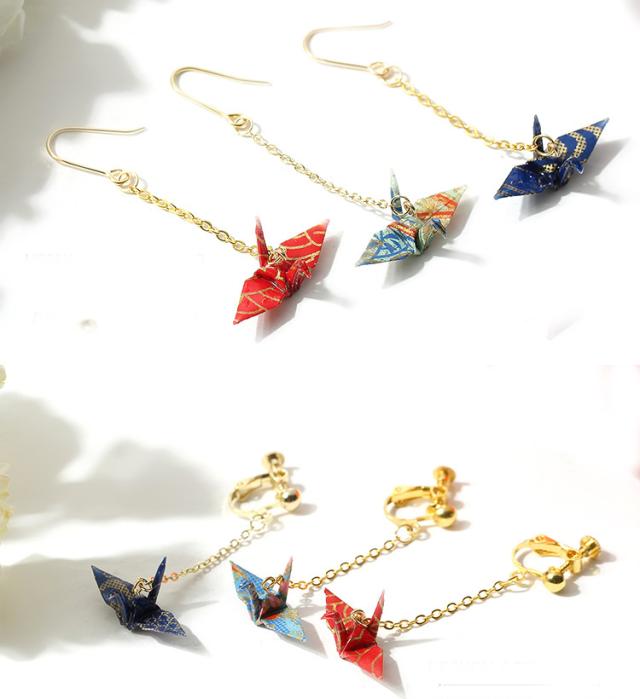 ピアス 1個 ハンドメイド 鶴 日本製 和風ピアス 和風イヤリング 和装 夏祭り 折り紙 ミニ 小振り 揺れる かわいい 浴衣 10種類