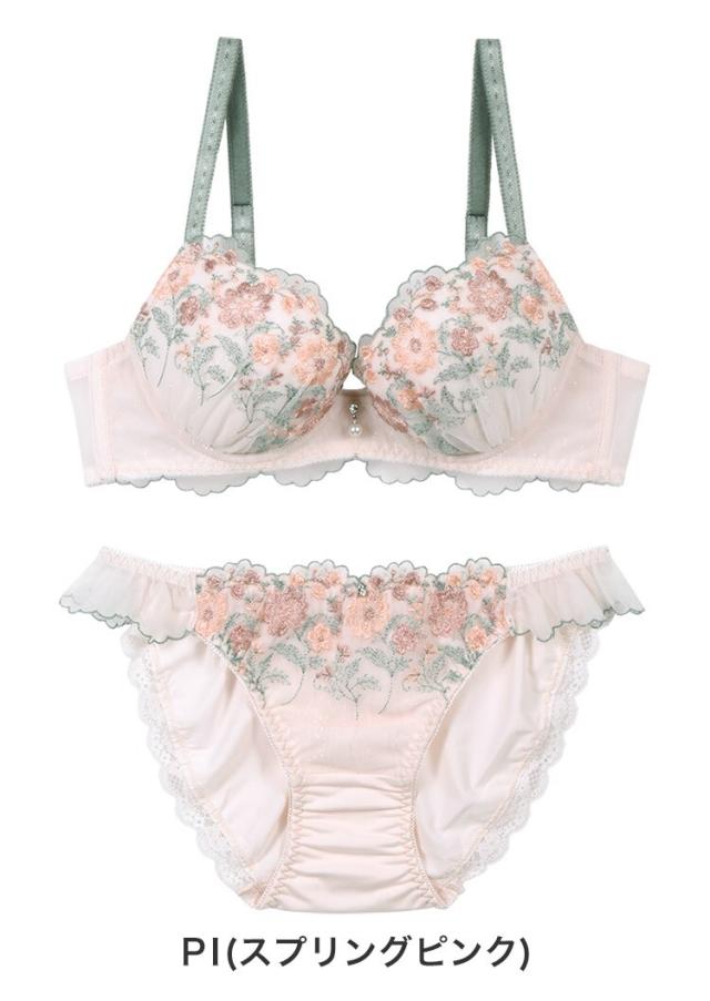 カップは刺繍チュールレースとジャガードシフォンの2種類の生地を使用したリッチな仕様。