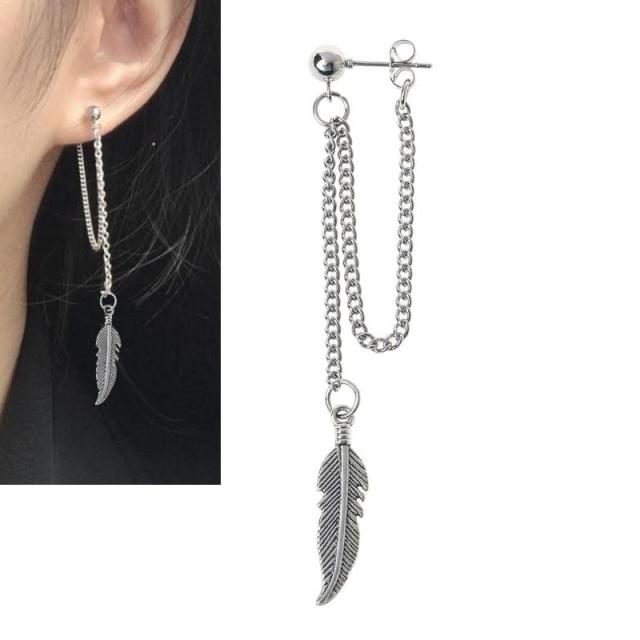 シンプルな5mmのボールピアスとキャッチをチェーンでつなげ、インディアンジュエリーでも人気の鳥の翼の羽根のパーツを鎖の先端につなげたロングチャームのステンレスピアス。メンズでもレディースでもジェンダーレスでも使えるおしゃれなステンピアスはペアルックやプレゼントにも。素材も安心のステンレスなのでどんな場面でも使えます。耳たぶだけでなく軟骨ピアスにも使えるチェーンピアス。存在感のあるステンレスピアスはスーツなどのフォーマルなスタイルにも似合う。