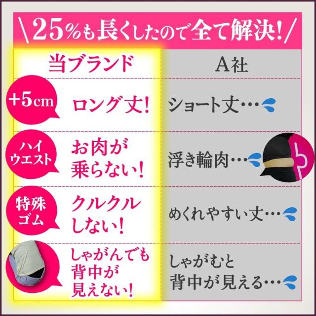 - 下着との間があかないよう、丈長めを探していたので購入しました。ゴム素材で伸縮性もあって、苦しくなくしっかりホールドしてくれそうです。