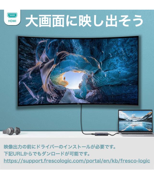 | ドライバーのダウンロード | 映像出力はドライバーをインストールする必要があります。 本製品をPCに繋げると、MAC OS用とWindows用ドライバーのインストール画面が表示されます。 表示されない場合は、商品ページ内のURLからダウンロードしてください。 「USB 3.0 to VGA/HDMI Driver(FL2000)」をインストールして必要に応じてOS再起動してください。 その後、HDMIケーブルを別ディスプレイと接続して完了です。 ※この時、USB3.0/3.1ポートに接続してください。 ※ディスプレイ設定は、「設定」「ディスプレイ」で設定してください。 |