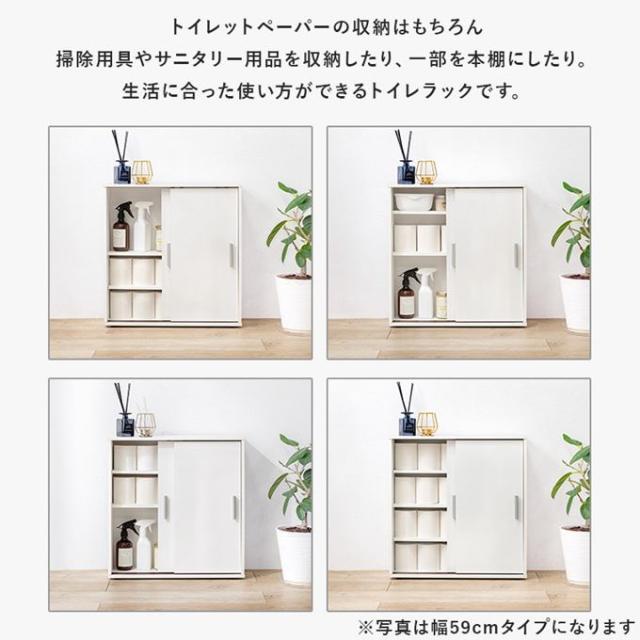 ●トイレットペーパーの収納はもちろん、掃除用具やサニタリー用品を収納したり、一部を本棚にしたり使い方自由!