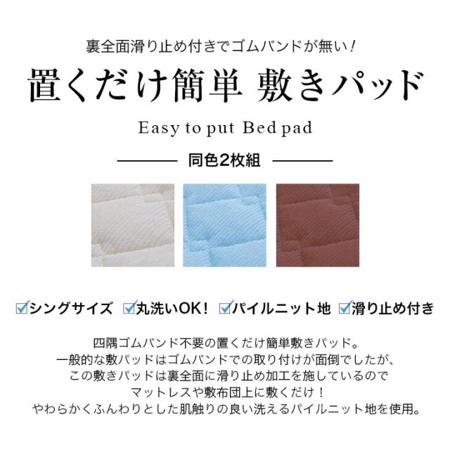 敷きパッド シングル 2枚組 100×200cm 洗える 置くだけ簡単 パイルニット地 滑り止め付き ベッドパッド ベッドシーツ マットレスパッド 送料無料