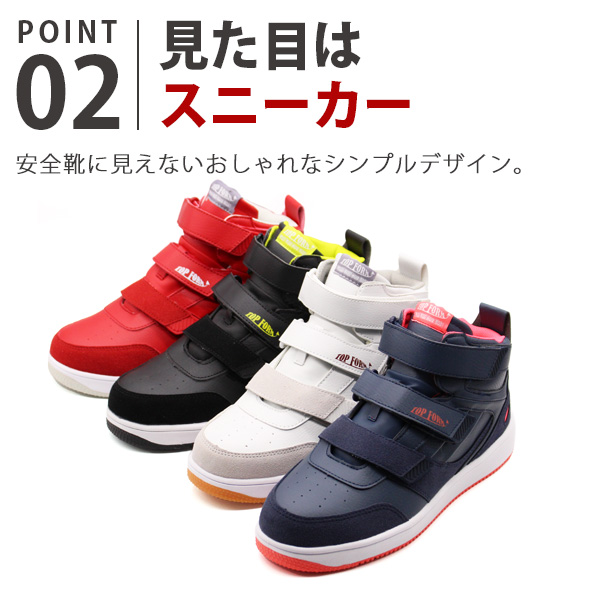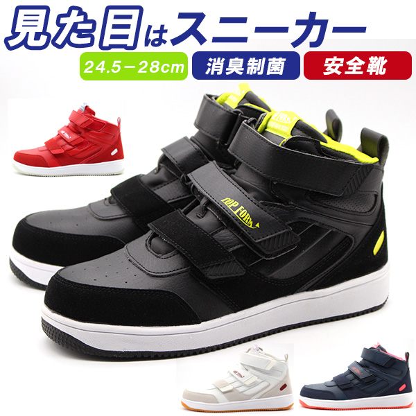 安全靴 メンズ レディース 靴 スニーカー 作業靴 ハイカット ミッドカット 黒 ブラック 白 ホワイト レッド ネイビー ワイズ 幅広3E シンプル おしゃれ ベルクロ バイク ベルト 仕事 作業 TOPFORM トップフォーム MG-5720 働く現場 ギフト