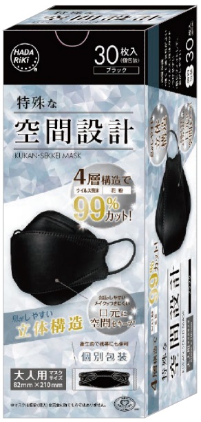 不織布マスク HADARIKI 空間設計マスク ブラック 30枚入り 個包装 カラーマスク