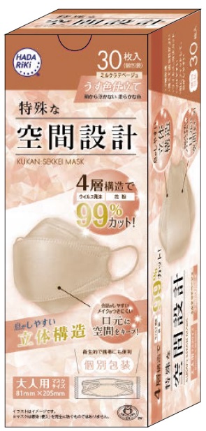 不織布マスク HADARIKI 空間設計マスク ミルクラテベージュ 30枚入り 個包装 カラーマスク