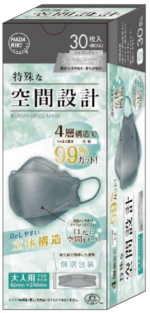 不織布マスク HADARIKI 空間設計マスク シャロングレー 30枚入り 個包装 カラーマスク