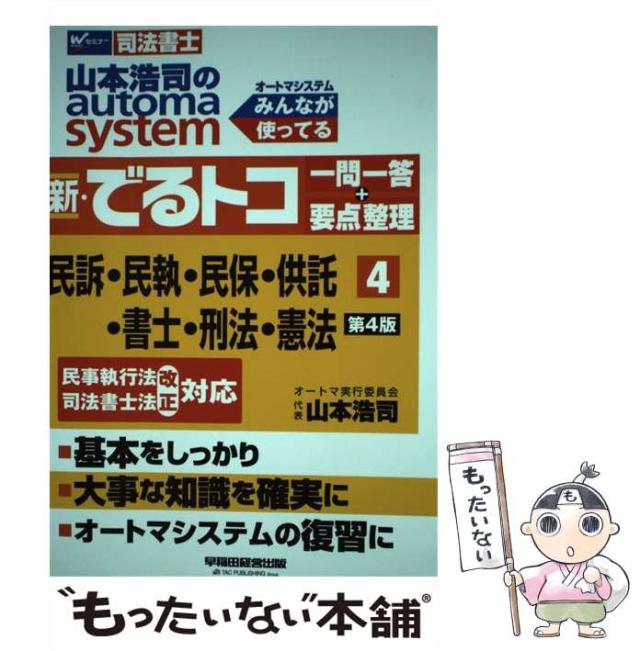 【中古】 山本浩司のautoma system新・でるトコ一問一答+要点整理 司法書士 4 民訴・民執・民保・供託・書士・刑法・憲法 第4版 / 山本浩司 / 早 [単行本(ソフトカバー)]【メール便送料無料】