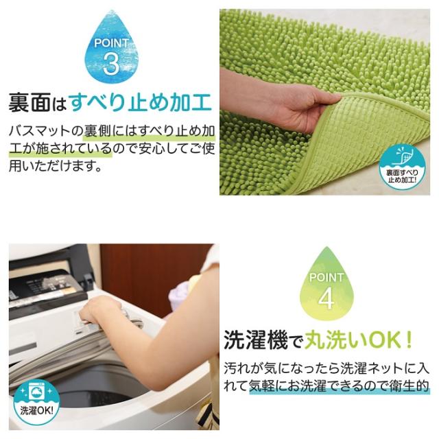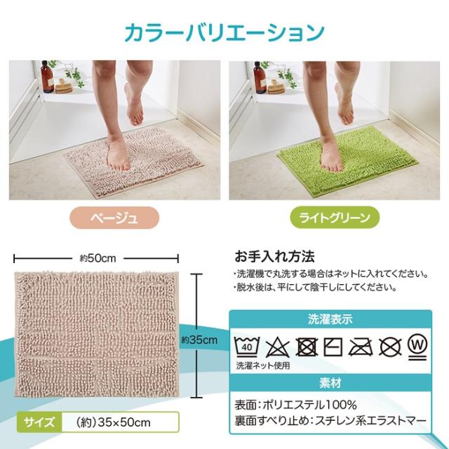 洗濯機で洗える バスマット 吸水 速乾 ベージュ/ライトグリーン 約35×50cm マイクロファイバー 丸洗い すべり止め 足拭き 足ふきマット お風呂マット 衛生的 アイメディア