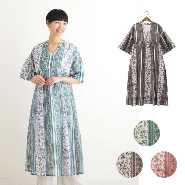 Shanti Shantiワンピース フラワーペイズリー 上品なペイズリーモチーフでオリエンタルな雰囲気に。 柔らかなボイル生地にストライプ状の上品なペイズリーモチーフをのせました。 オリエンタルな雰囲気とトレンド感のあるスタイルで目を引くことまちがいなし♪