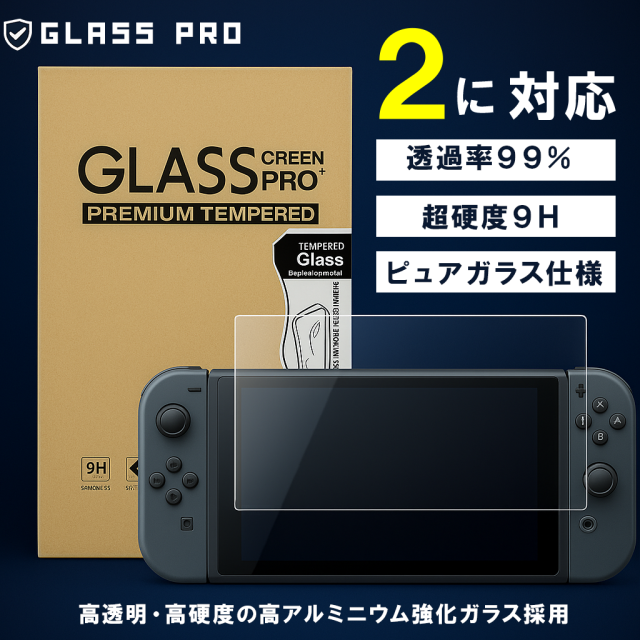Nintendo Switch2 ガラスフィルム GLASS PRO 保護フィルム スイッチ2 本体用 液晶保護 画面カバー ケース併用可 ゲーム機 プレゼント 子供 ガラス 透過率 99 % 9H 傷防止