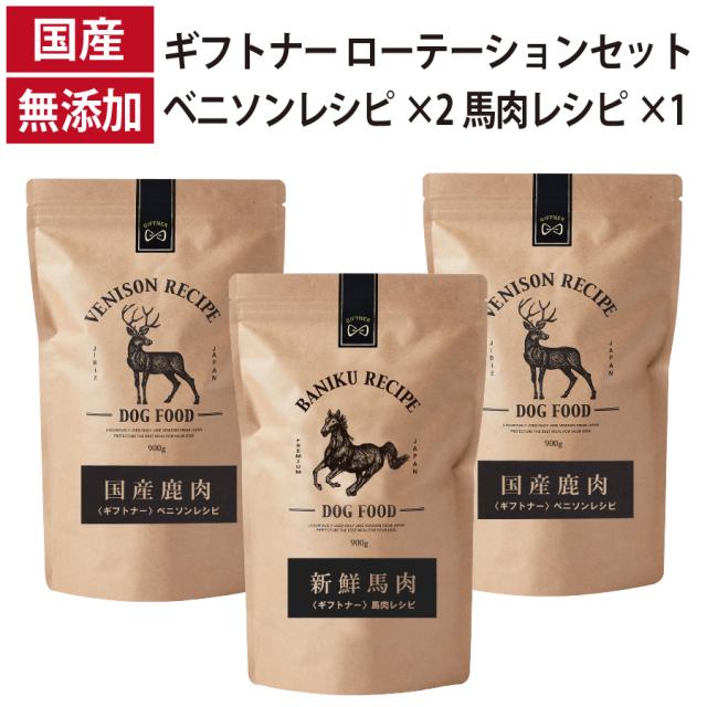 ギフトナー ローテーションセット ベニソンレシピ×2 馬肉レシピ×1 国産 無添加 馬肉 鹿肉 ベニソン 全年齢 GIFTNER