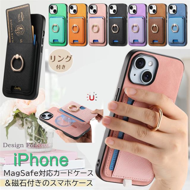 iphone 16proケース MagSafe対応 カードケース iPhone17 ケース アイフォン16ProMax 16Plusケース アイホン 16 15 14 スマホケース iphone13 12 11 XS XR X 8 7 se2 se3 カバー 耐衝撃 レザー 頑丈 メンズ 男性 スリム 軽量 リング付き マグセーフ カードポケット付き