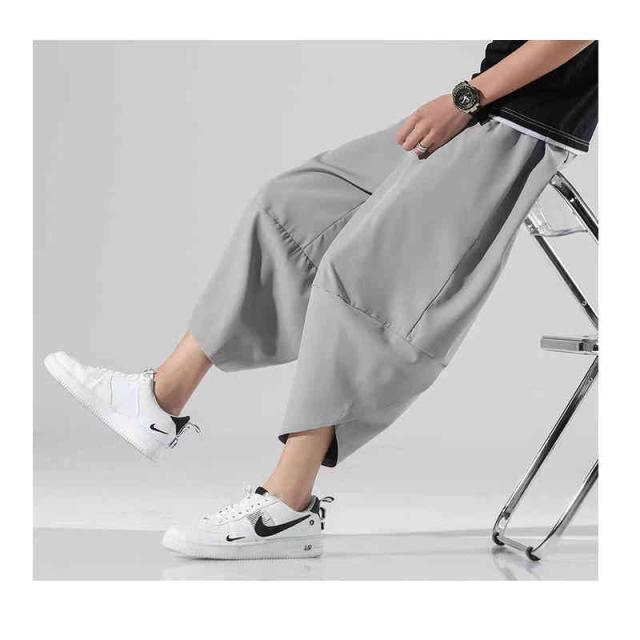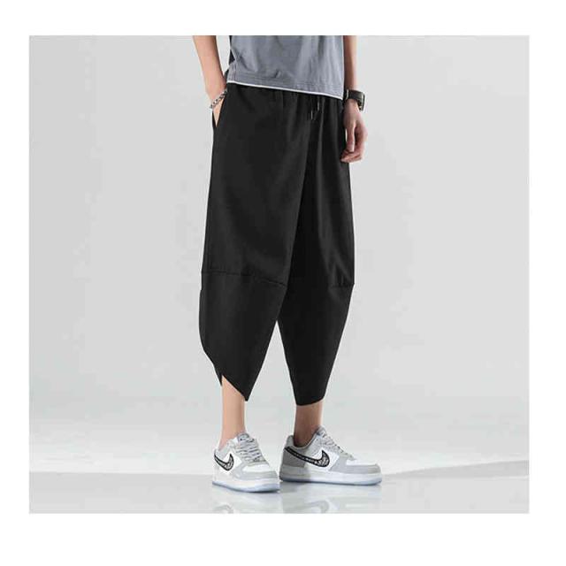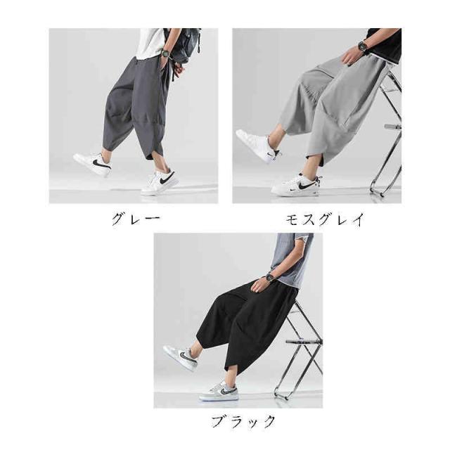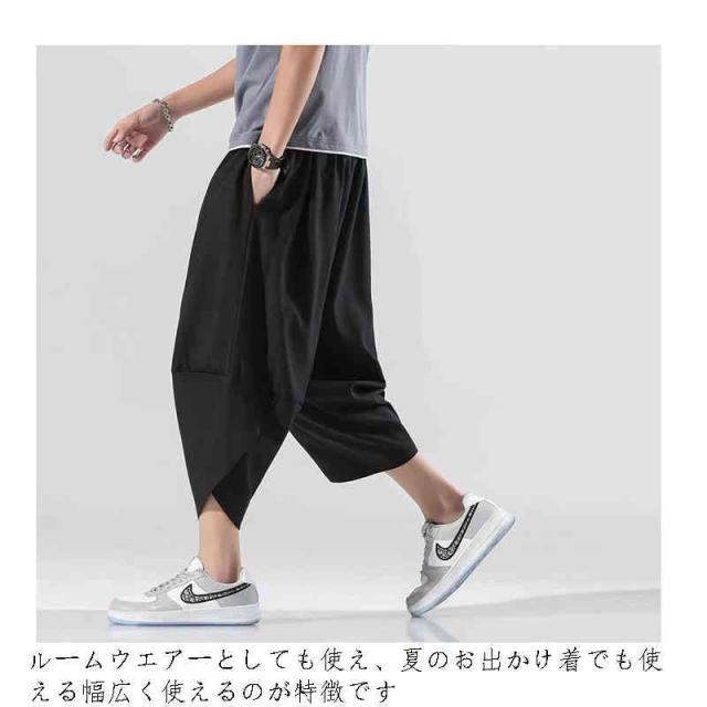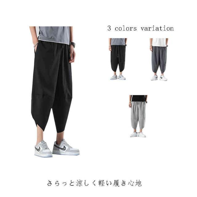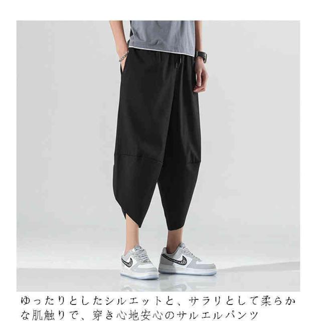 サルエルパンツ メンズ 7分丈 接触冷感 クロップドパンツ ウエストゴム ひざ下 涼しい リラックス ルームウェア 部屋着 無地 春服 夏服