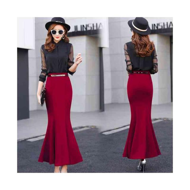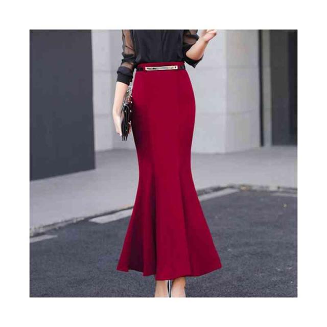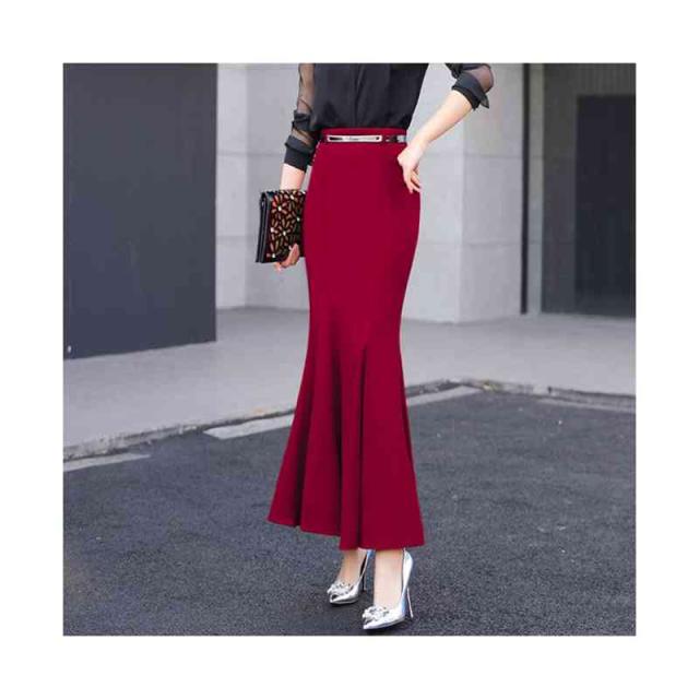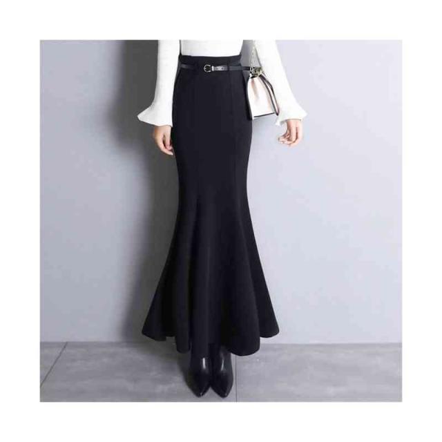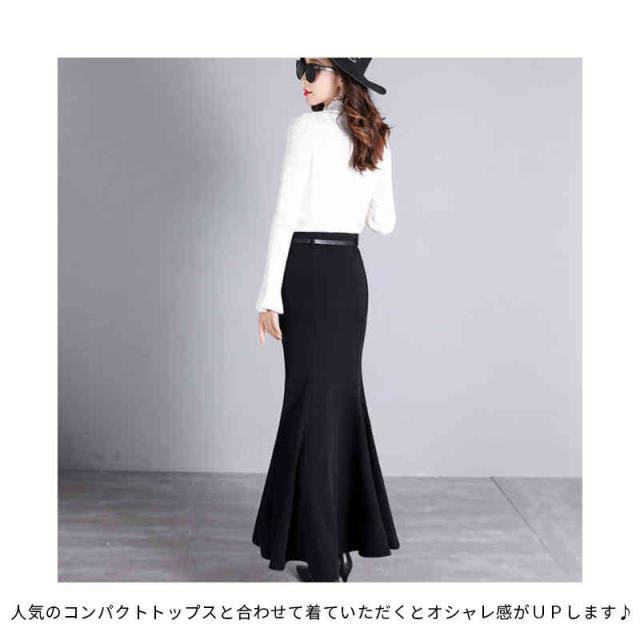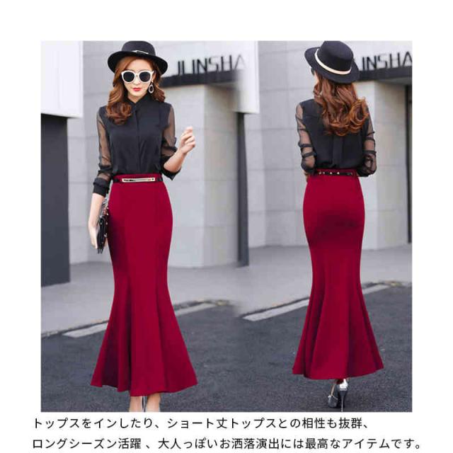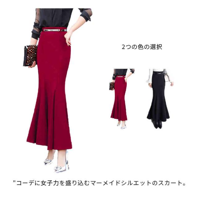 ロングスカート マーメイドスカート ベルト付き ストレッチ マキシ丈スカート マキシスカート タイト フィッシュテールスカート レット ブラック おしゃれ スタイルアップ