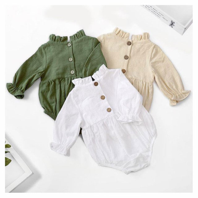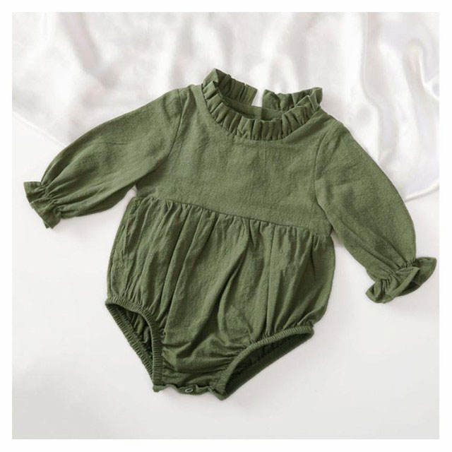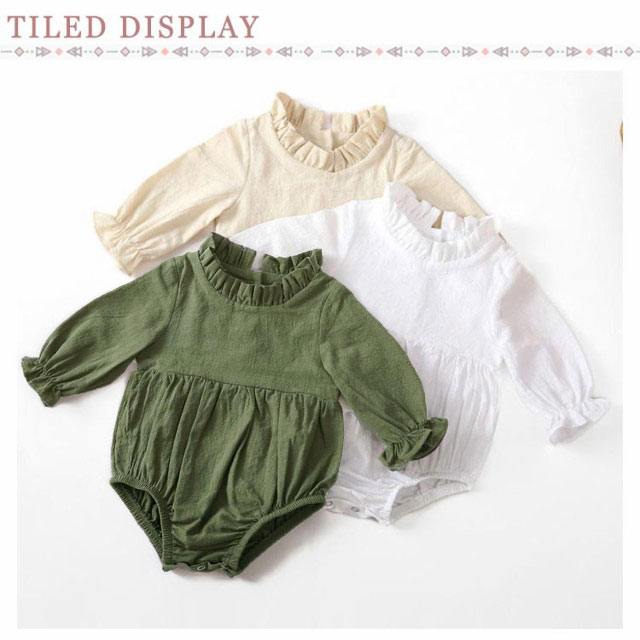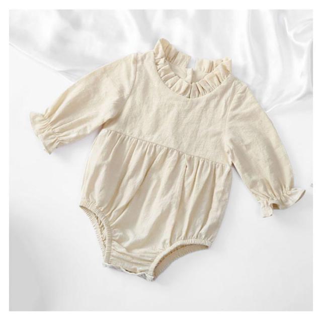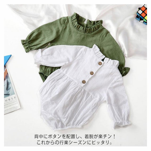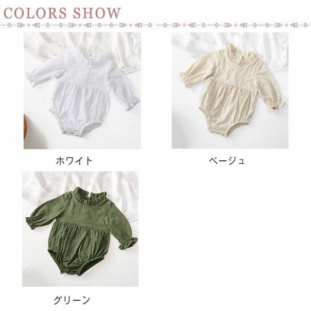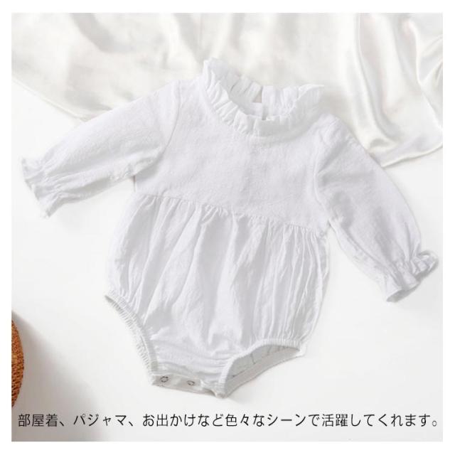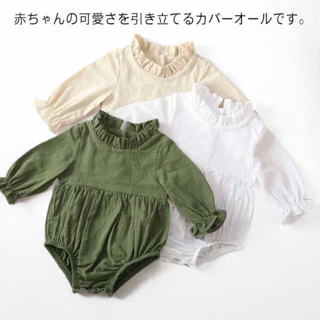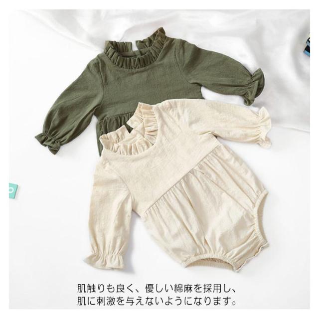 ロンパース ベビー服 長袖 春夏 カバーオール 女の子 赤ちゃん 生産祝い 無地 柔らかい 通気性 フリル 新生児 綿麻 送料無料