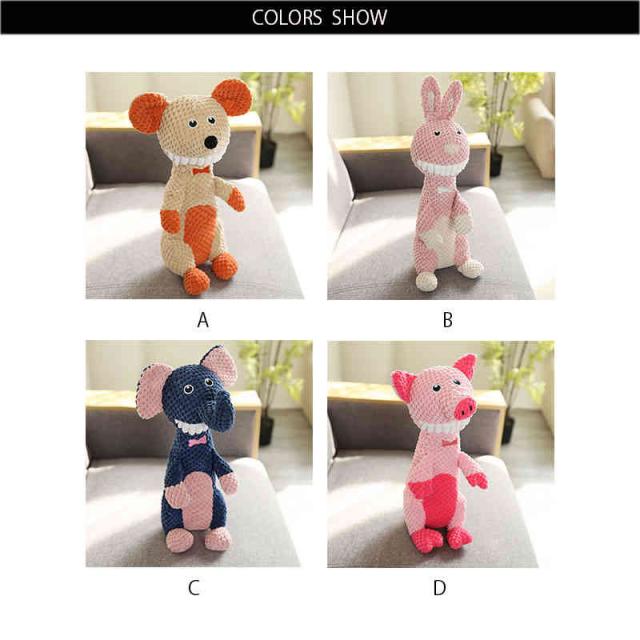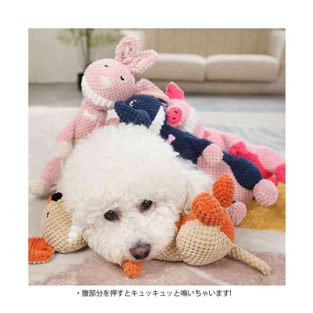 | ・とっても可愛いアニマルデザイン★ ・噛んで遊んでストレス解消!!これで愛しのペットも大喜び!! ・伸び縮みする生地で遊びながら噛む事でデンタル効果が期待出来ます。 ・腹部分を押すとキュッキュッと鳴いちゃいます! | |