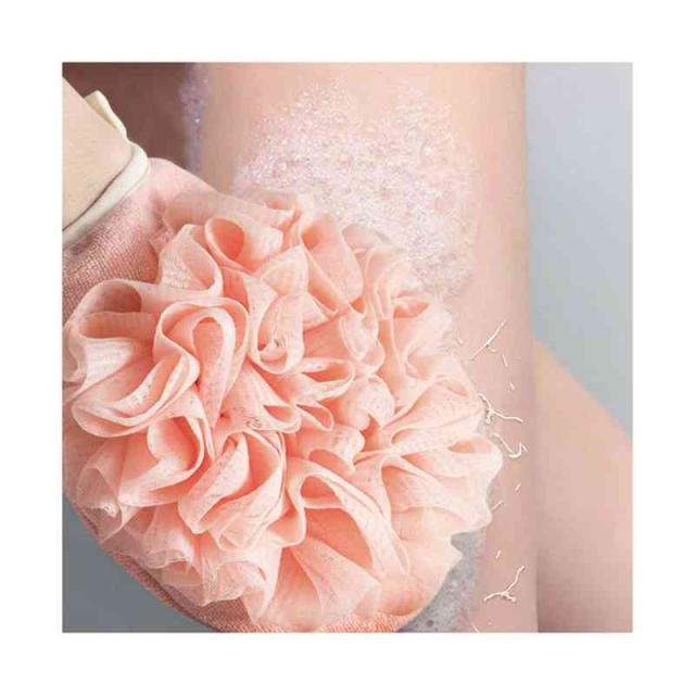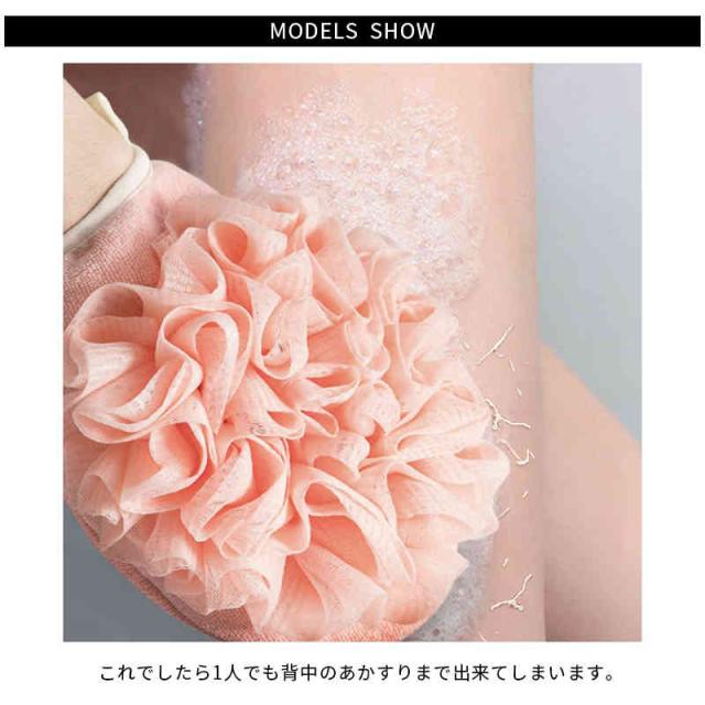 | お風呂に入るとなんとなく綺麗にあかすりをしたくなってしまいますね。 これでしたら1人でも背中のあかすりまで出来てしまいます。 グローブ+ボディウォッシュボール一体型、両面使用可能です。 | |