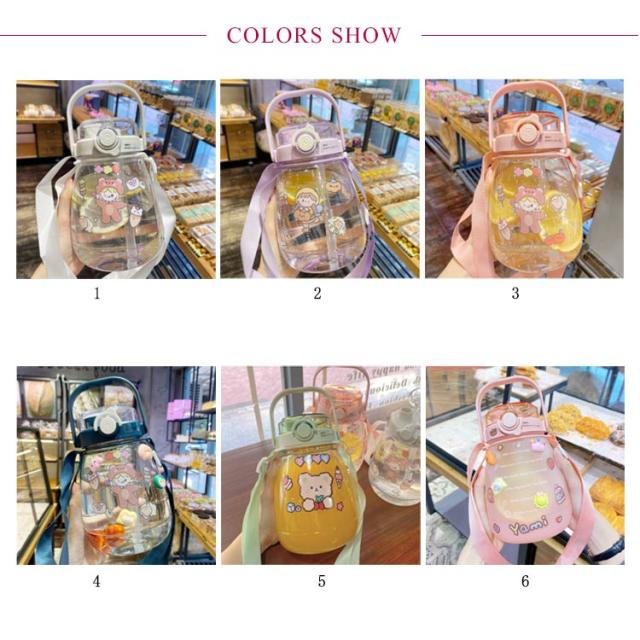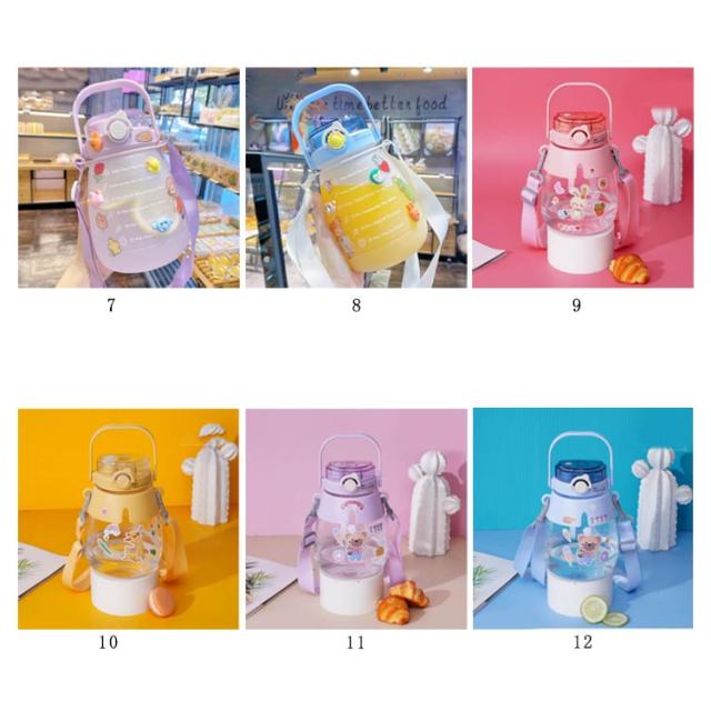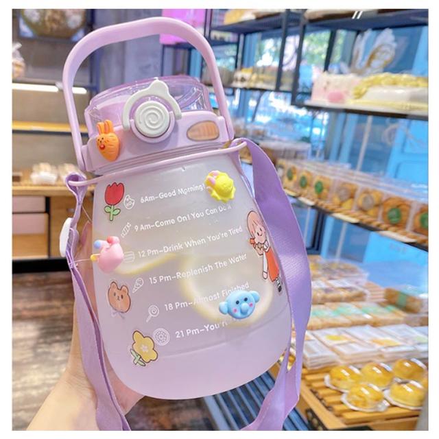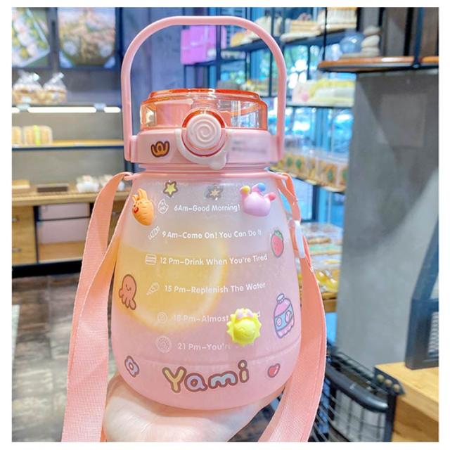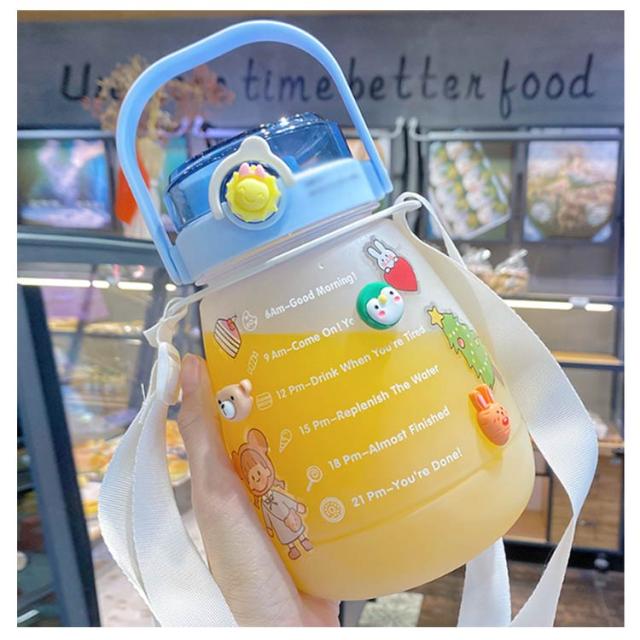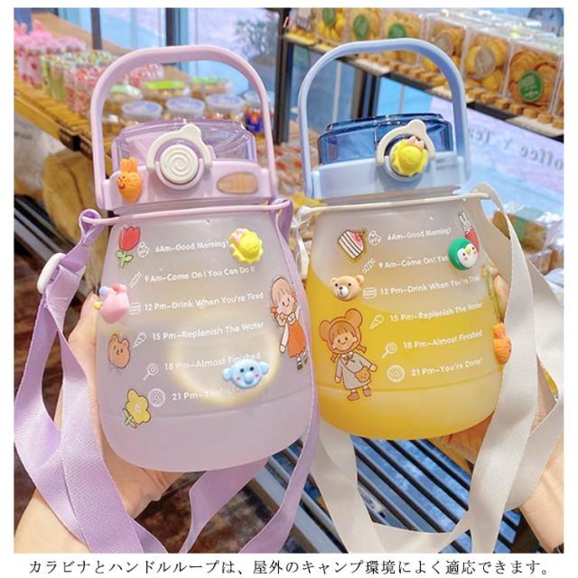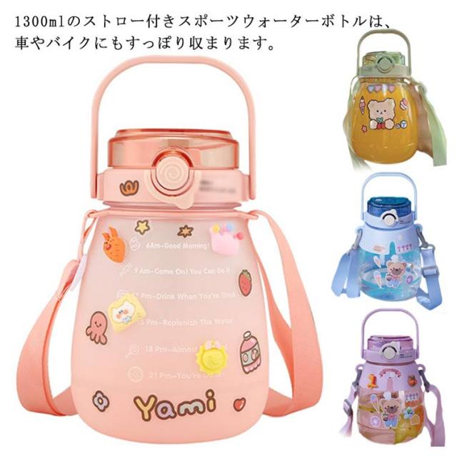 水筒 かわいい 大容量 ウォーターカップ ウォーターボトル ストロー付き 目盛り 携帯ボトル 持ち運び 職場 学校 ジム 運動 旅行 キャンプ アウトドア 透明 漏れ防止 軽量 おしゃれ 1300ml