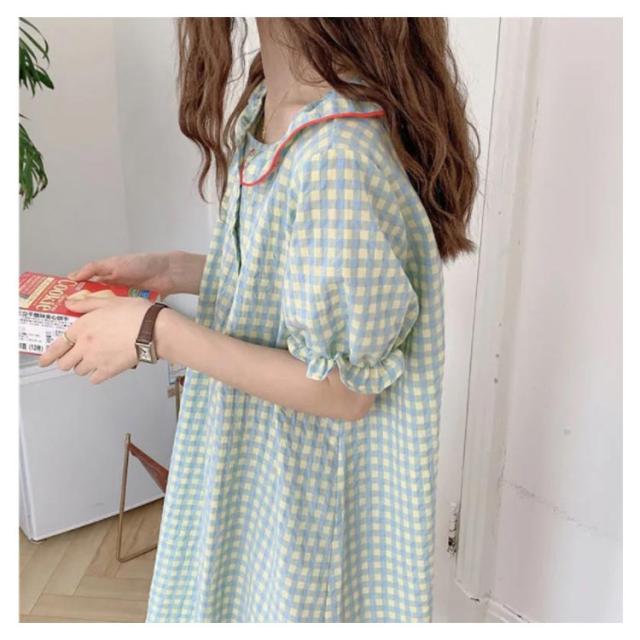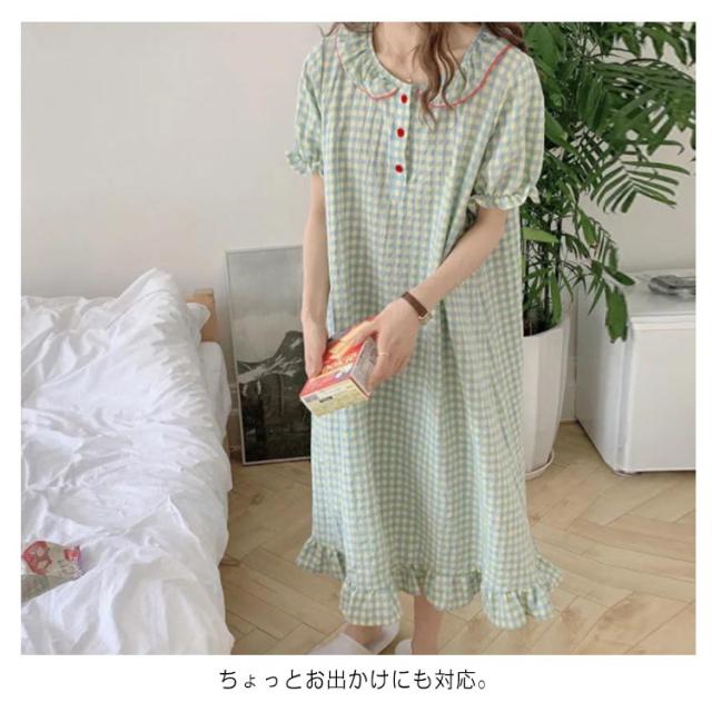 ワンピース ルームウェア 綿 半袖 レディース 部屋着 かわいい 夏 パジャマ ネグリジェ ロング丈 チェック柄 大人可愛い ゆったり コットン ワンピ おしゃれ リラックス 寝巻き 体型カバー 送料無料