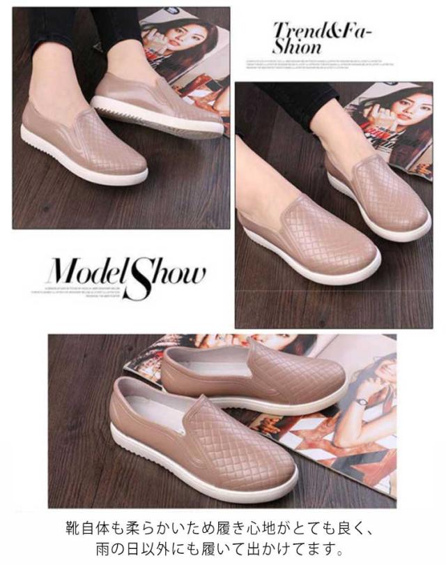| これから梅雨シーズン活躍するレインスニーカーが新登場! スリッポンタイプで脱ぎはきは楽です。 シンプルなデザインで男女問わずお使いいただけます。 完全防水で雨の日に使えること、汚れたら水洗いできます。 靴自体も柔らかいため履き心地がとても良く、雨の日以外にも履いて出かけてます。 つま先部分はラウンドライプなので、指は空間があってフォルムはカジュアルです。 雨の日のお買い物やベランダ、車の洗車、ガーデニング等のお庭仕事に。 | |