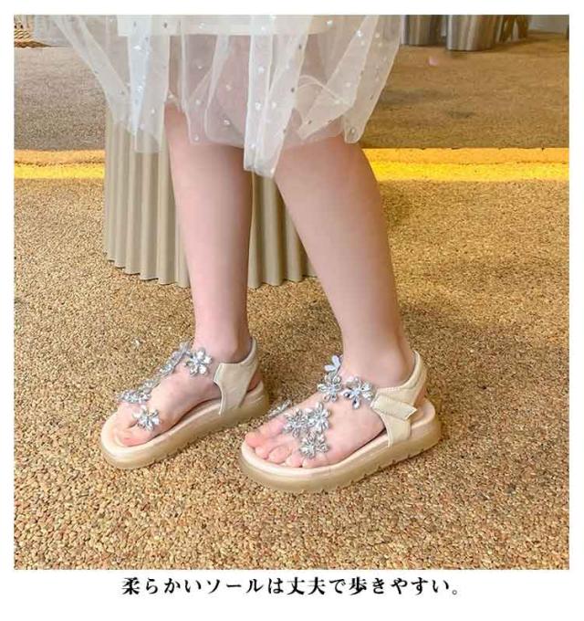 サンダル 女の子 キラキラ ストーン キッズシューズ ビーチサンダル カジュアルサンダル 子供シューズ ピアノ発表会 靴 結婚式 子ども靴 フォーマル