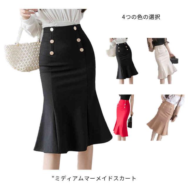 マーメイド スカート レディース ミディアム ひざ丈 春 夏 秋 ブラック ベージュ レット キャメル スカート マーメードスカート ミモレ タイト ホワイト オフィス 大人 20代 30代 40代 OL ママ 母