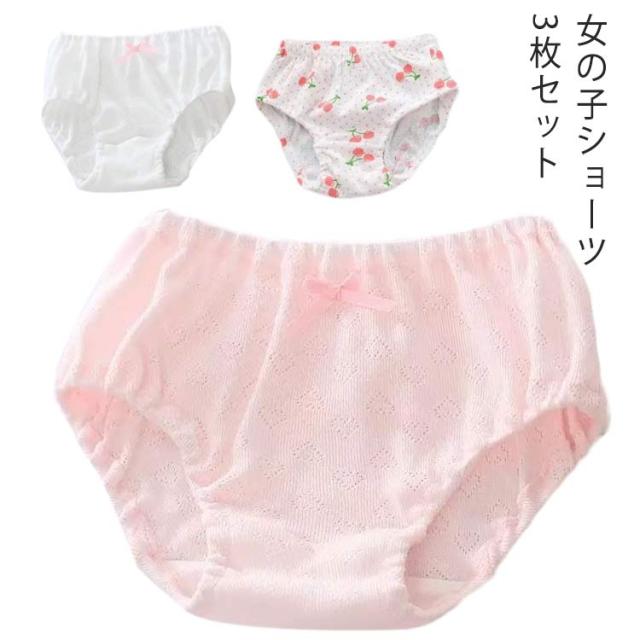 キッズ下着 3枚組 ブリーフ ショーツ 総柄 かわいい 下着セット 女の子 子ども キッズインナー 下着 リボン 送料無料