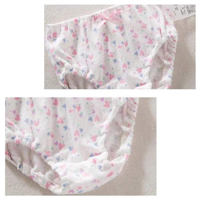 | 可愛い女の子ショーツ3枚セット。 綿で通気性も良くお肌にも優しい。 ウェストには、お腹への圧迫の少ない柔らかなウェストゴムが使用されています。 生地がしっかりしていて、洗濯も安心。 | |