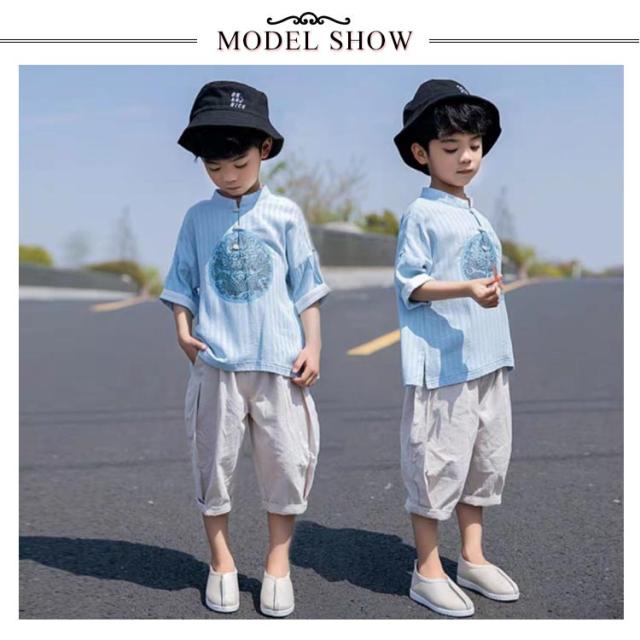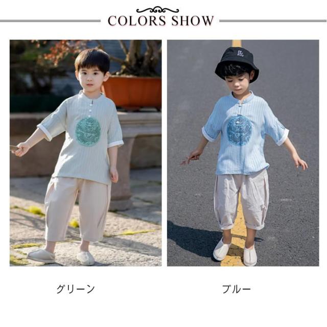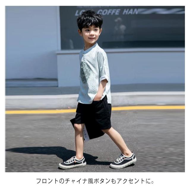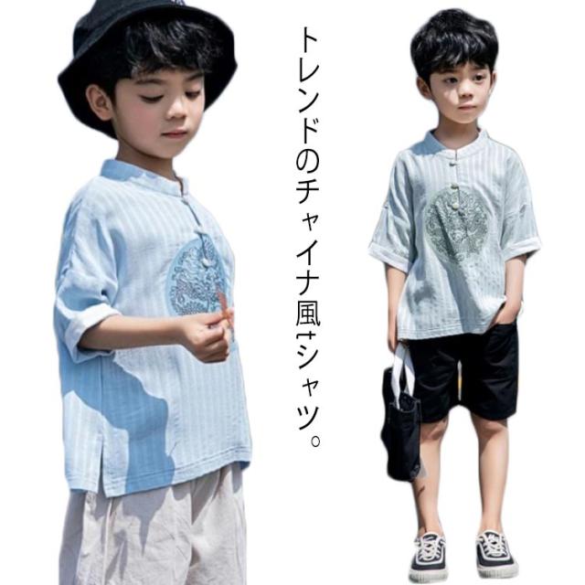 tシャツ 半袖 キッズ 子供服 チャイナ服 男の子 子供 チャイナ風 Tシャツ 綿麻 綿 麻混 コットン リネンtシャツ キッズ服 ジュニア 子ども用 プリント チャイナボタン スタンドカラー 龍柄 中国風 漢服 夏 おしゃれ かわいい 学園祭 文化祭 送料無料