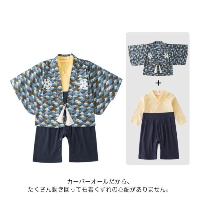 ベビー服 男の子 袴風 ロンパース 新生児 着物 カバーオール 和装 赤ちゃん フォーマル お食い始め お宮参り 初節句 春夏秋 出産祝い