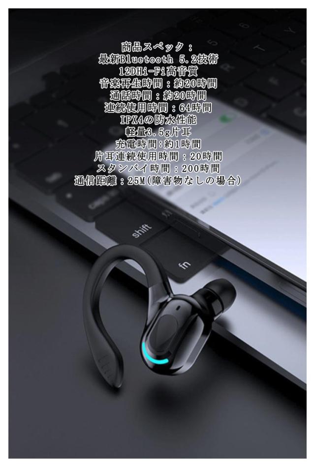 | 商品スペック: 最新Bluetooth 5.2技術 12DHi-Fi高音質 音楽再生時間:約20時間 通話時間:約20時間 連続使用時間:64時間 IPX4の防水性能 軽量3.5g片耳 充電時間:約1時間 片耳連続使用時間:20時間 スタンバイ時間:200時間 通信距離:25M(障害物なしの場合) | |