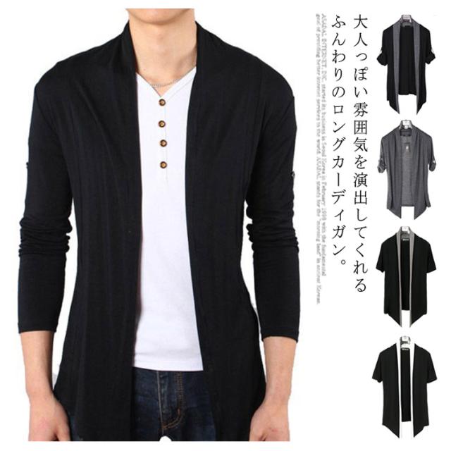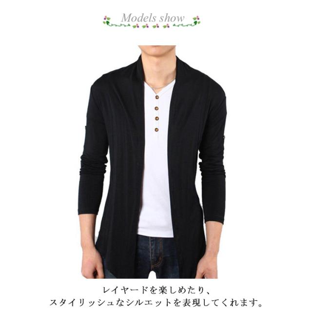 ロングカーディガン サマー カーディガン メンズ サマーニット カーデ 長袖 半袖 羽織 薄手 ストレッチ 襟付き トップス メンズファッション ロング丈 ゆったり スタイリッシュ 前開き 日焼け防止 レイヤード コーデ ジャケット 送料無料
