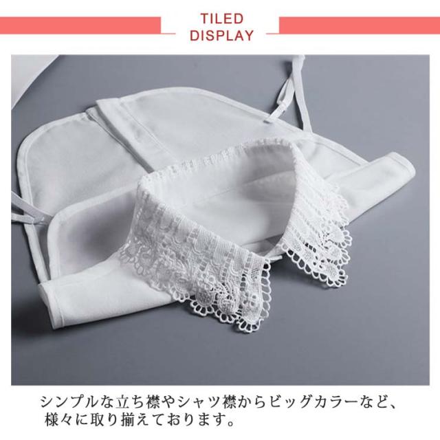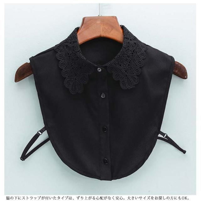 | アクセサリー感覚で簡単に着回し可能な付け襟です。 脇の下にストラップが付いたタイプは、ずり上がる心配がなく安心。大きいサイズをお探しの方にもOK。 シンプルな立ち襟やシャツ襟からビッグカラーなど、 様々に取り揃えております。 | |