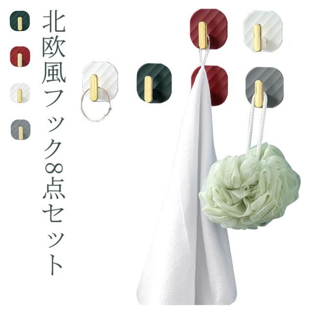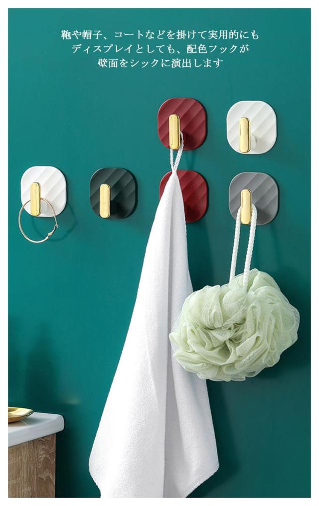 フック 8個セット 粘着フック 強力粘着 壁掛け 壁がけ L字 収納 フック 帽子掛け バッグ コート掛け 衣類収納 小物収納 鍵 マスク掛け 傘掛け 玄関収納 キッチンツール 収納 壁面収納 おしゃれ ゴールド 配色 北欧風 プラスチック リビング オフィス 自宅 ホテル 送料無料