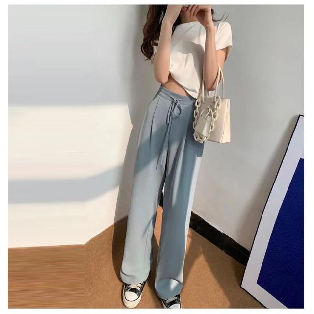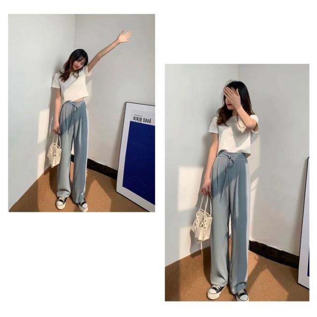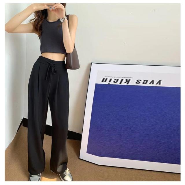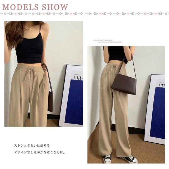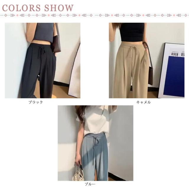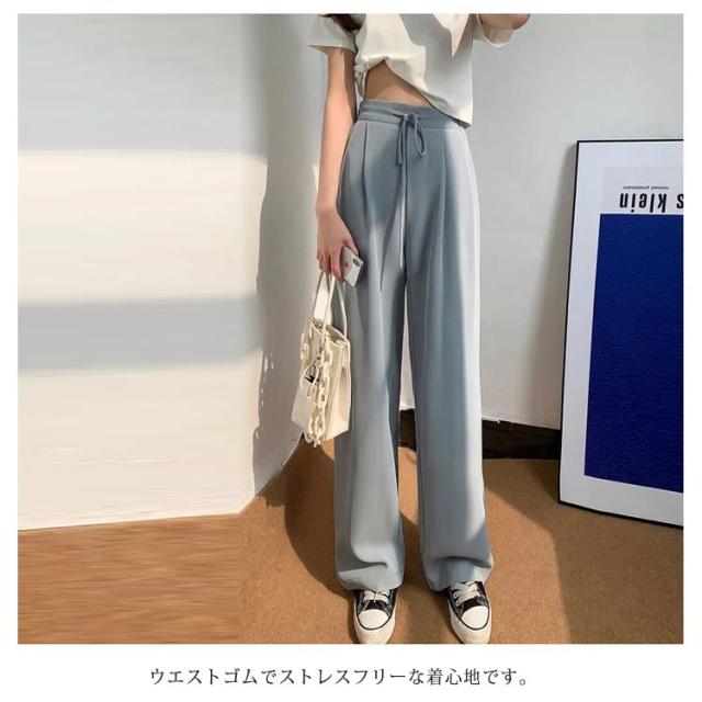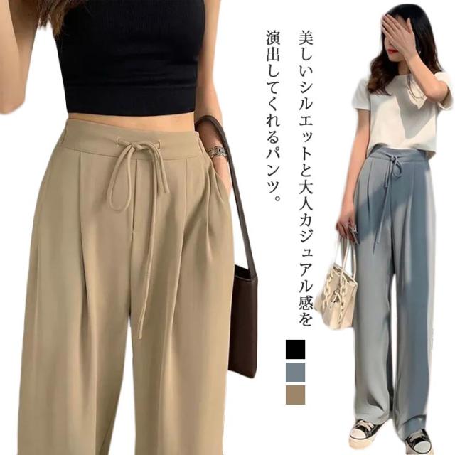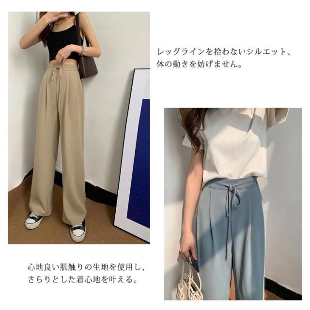 ワイドパンツ レディース ハイウエスト 涼しい カジュアル 夏 ストレート ゆったり ボトムス 大きいサイズ 落ち感 薄手 ロングパンツ 長ズボン おしゃれ シンプル ウエストゴム リラックス 体型カバー 送料無料