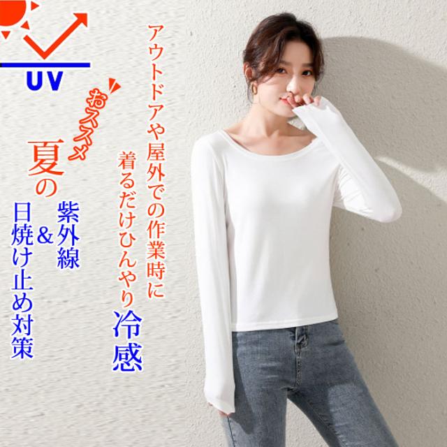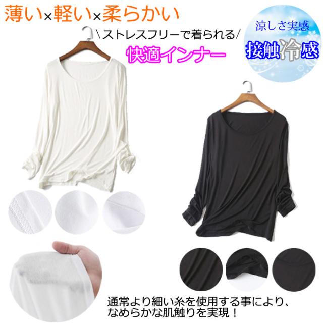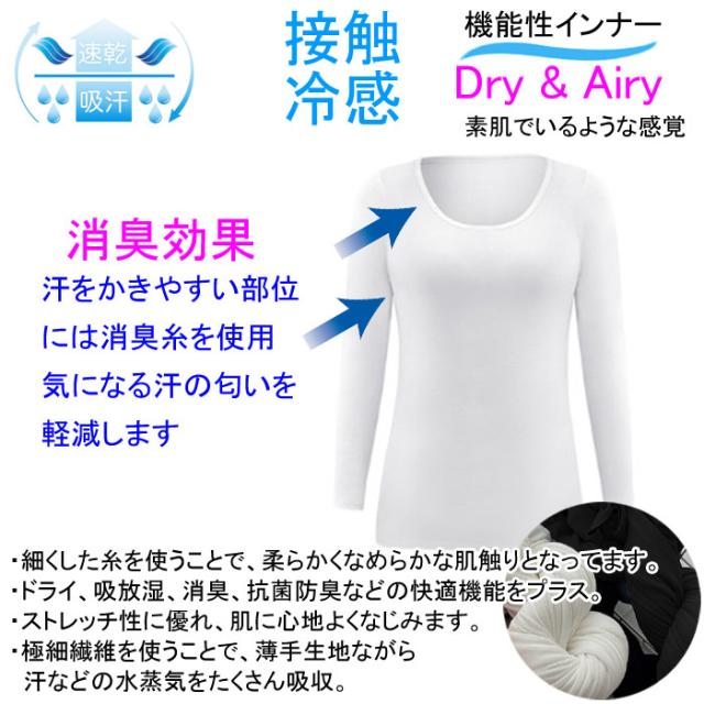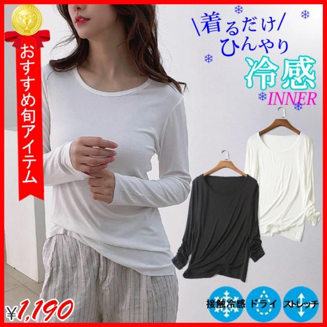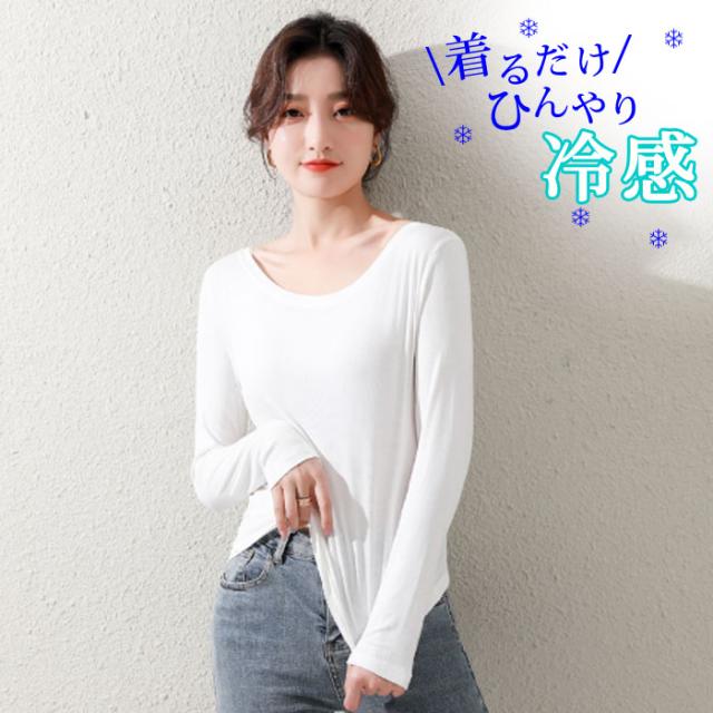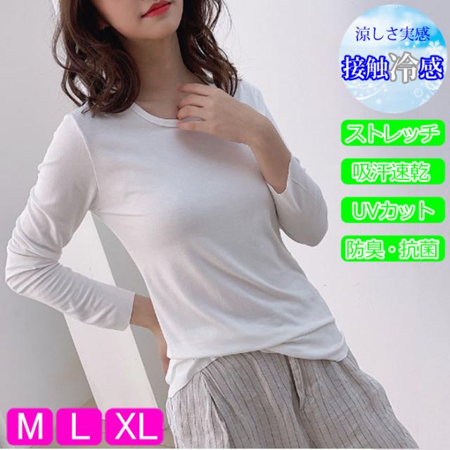 冷感 長袖 インナー 汗取り 長袖 丸首 レディース 春 夏 汗対策 ドライ 脇汗 汗染み ストレッチ 吸汗速乾 M L XL 大きいサイズ reikan-ch
