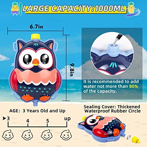子供用のバックパック水鉄砲は持ち運びや保管が簡単です。水鉄砲は夏の水鉄砲の戦い、裏庭、プール、サマーキャンプ、ビーチサンド、アウトドアアクティビティに最適なおもちゃです。アヒルの子、ブタ、ペンギン、フクロウ、エルク、ユニコーンなど、かわいいパターンの水鉄砲。それは子供たちにとって超驚きです!お友達との無限の楽しみをお楽しみください!
