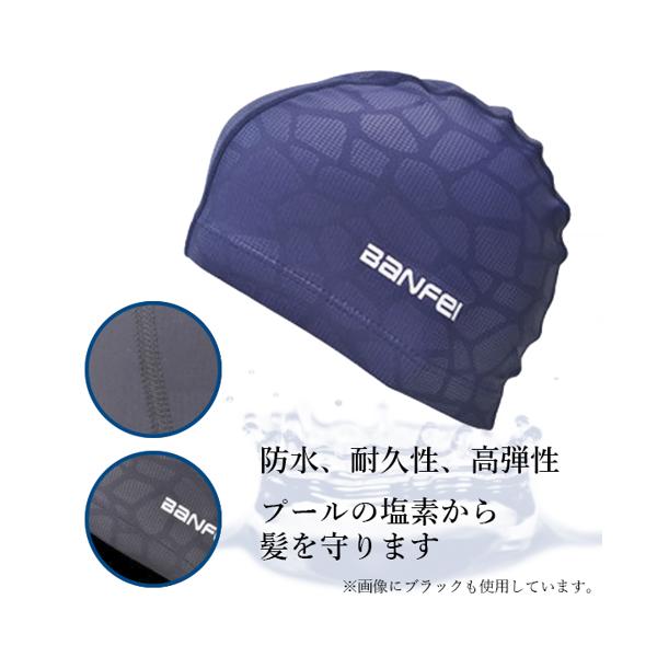 防水・耐久性・高弾性に優れておりプールの塩素から髪を守ってくれます。