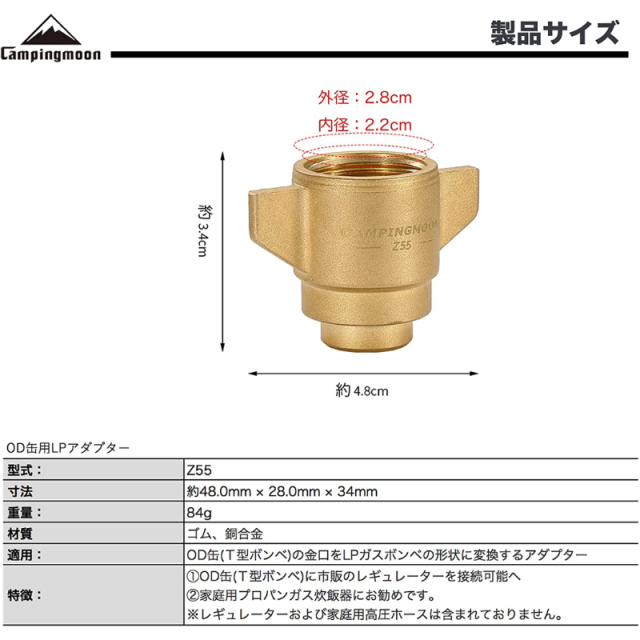 キャンピングムーン(CAMPING MOON) OD缶に接続 LPアダプター 互換アダプター ねじ込み式 変換アダプター ガス変換 ガスツール Z55