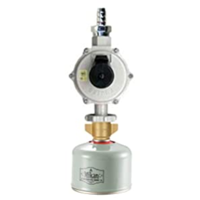 仕様:OD缶(T型ボンベ)に市販のレギュレーターを接続する。