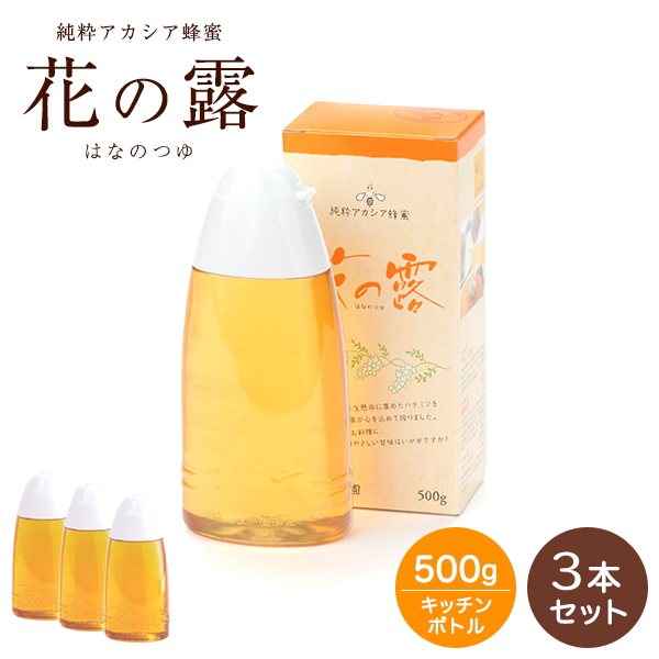 花の露(アカシア蜂蜜) キッチンボトル500g×3本 売れています! 蜂蜜 ハチミツ 武州養蜂園 【ギフト 夏ギフト お中元 プレゼント セット ホットケーキ ヨーグルト 料理 お得 タレない 天然 100% 使いやすい】送料込価格