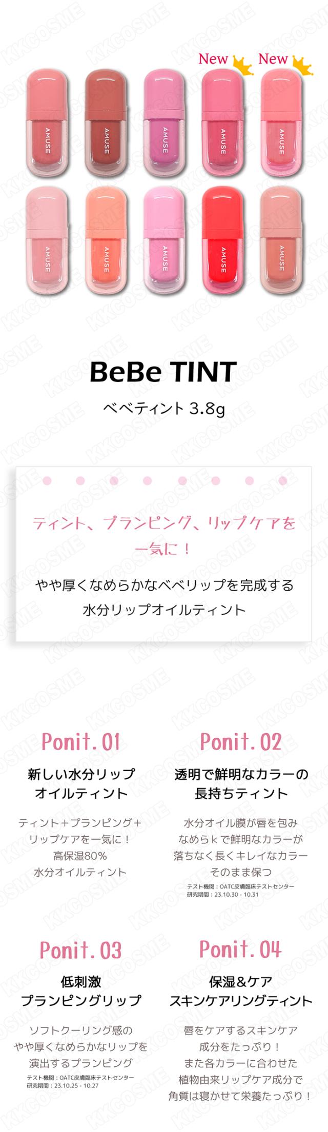 amuse アミューズ べべティント 各3.8g 新カラー追加 ヴィーガンティント オイルティント プランピングリップ 単品 韓国コスメ 正規品