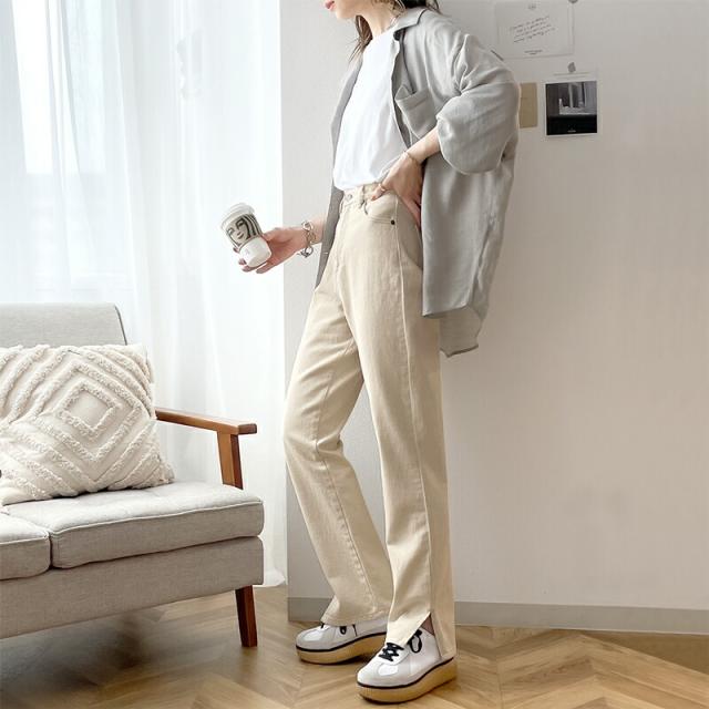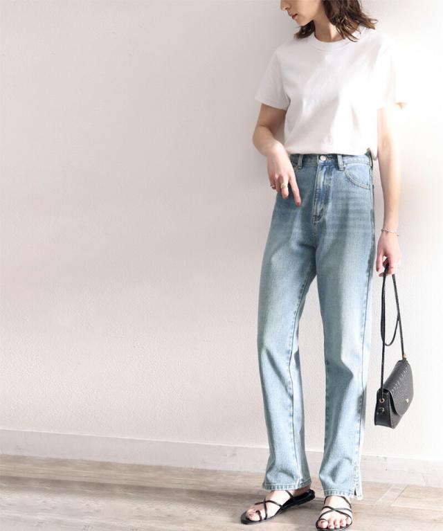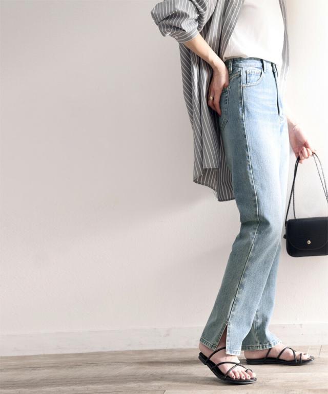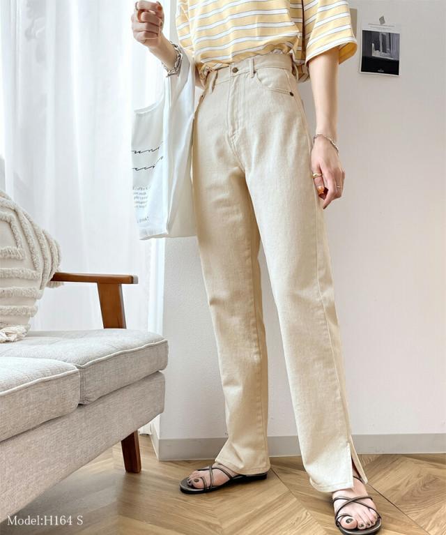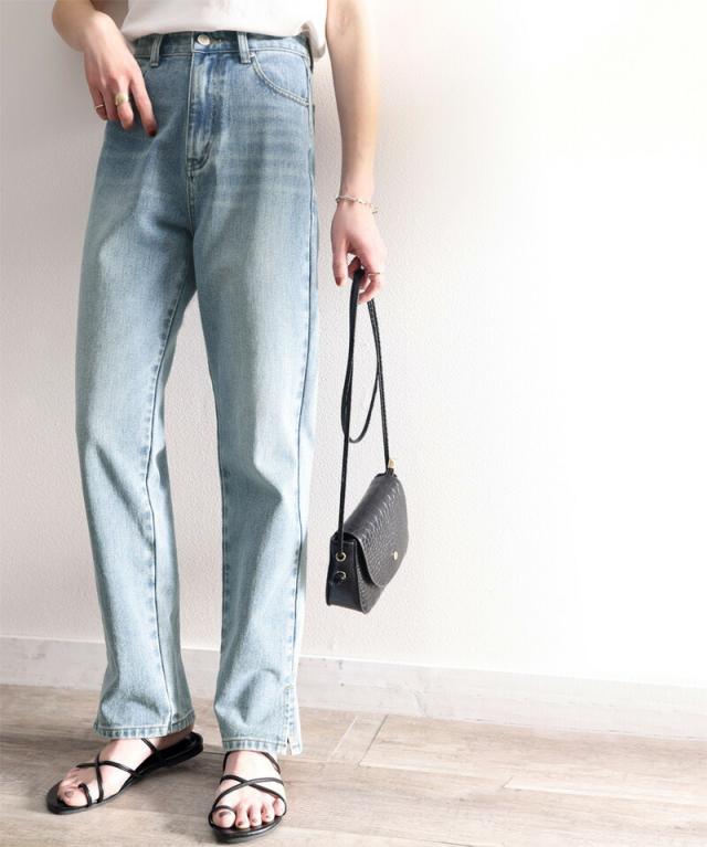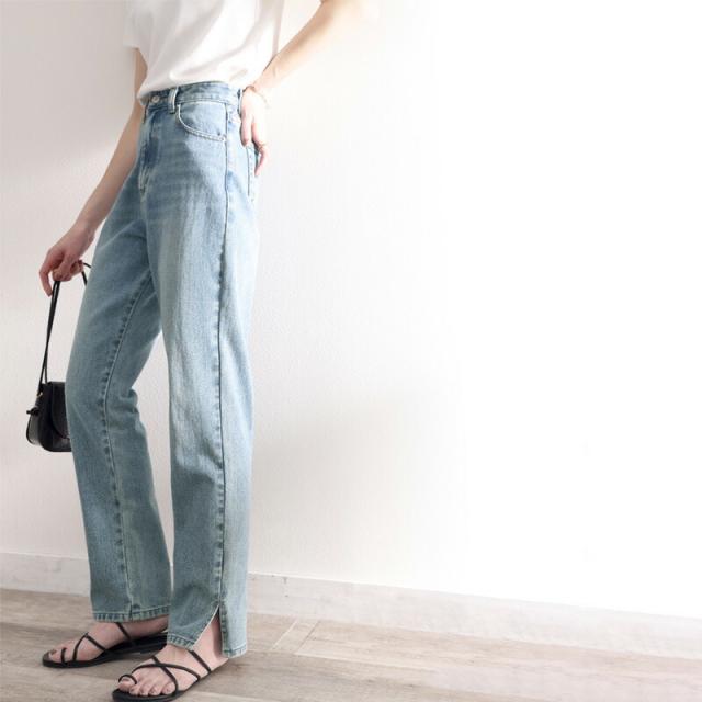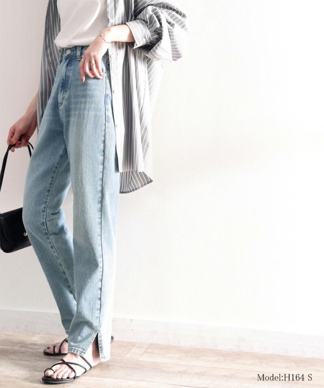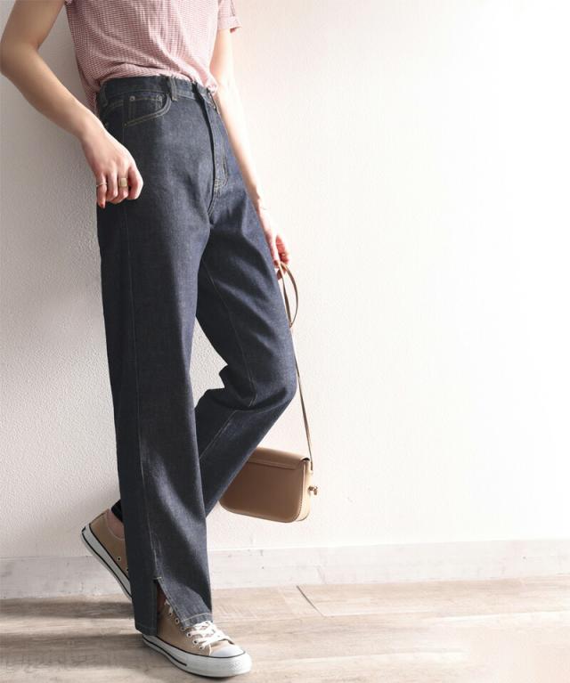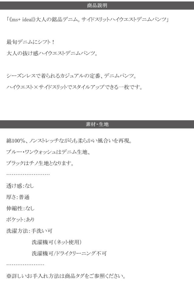 ★《ms+ ideal》大人の銘品デニム。サイドスリットハイウエストデニムパンツ★