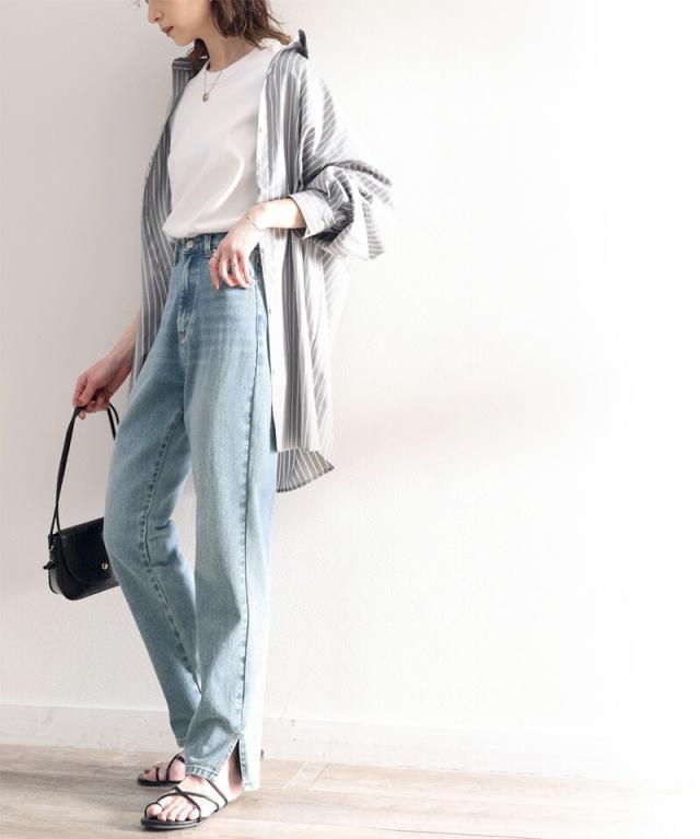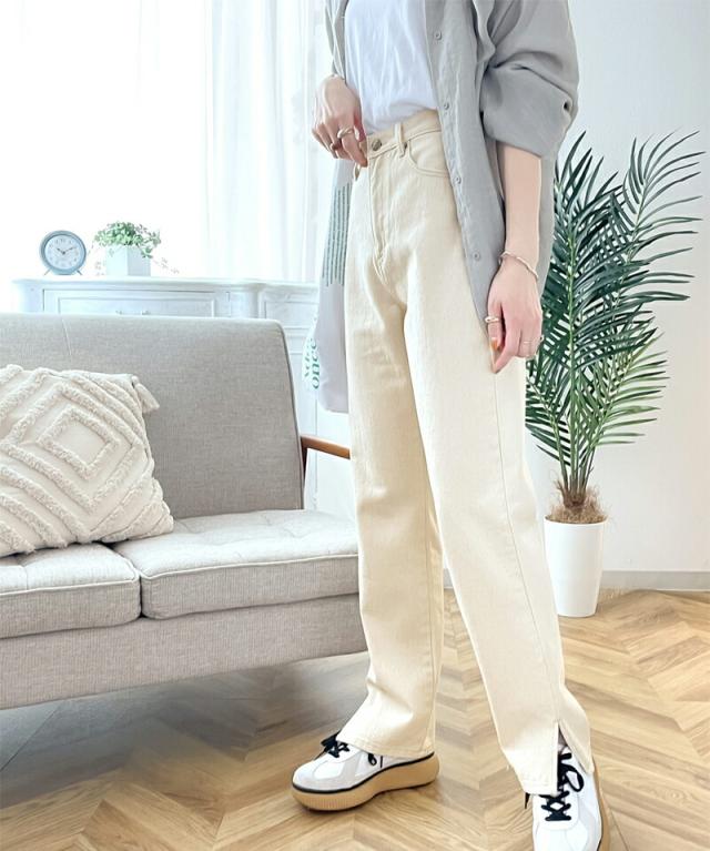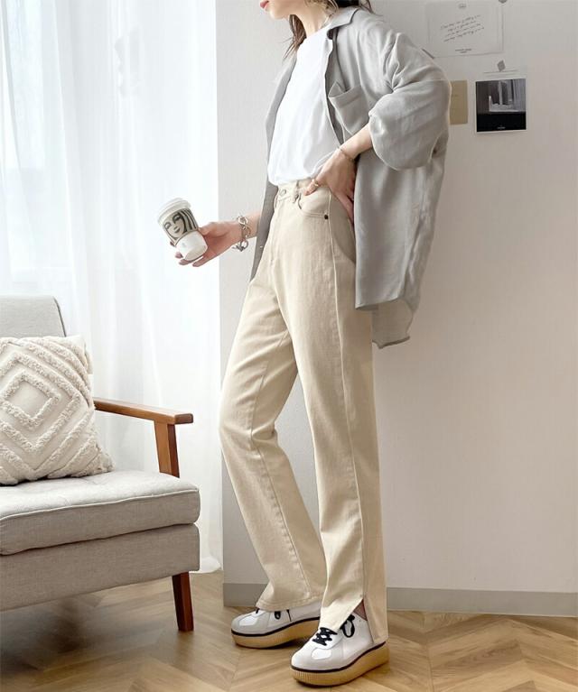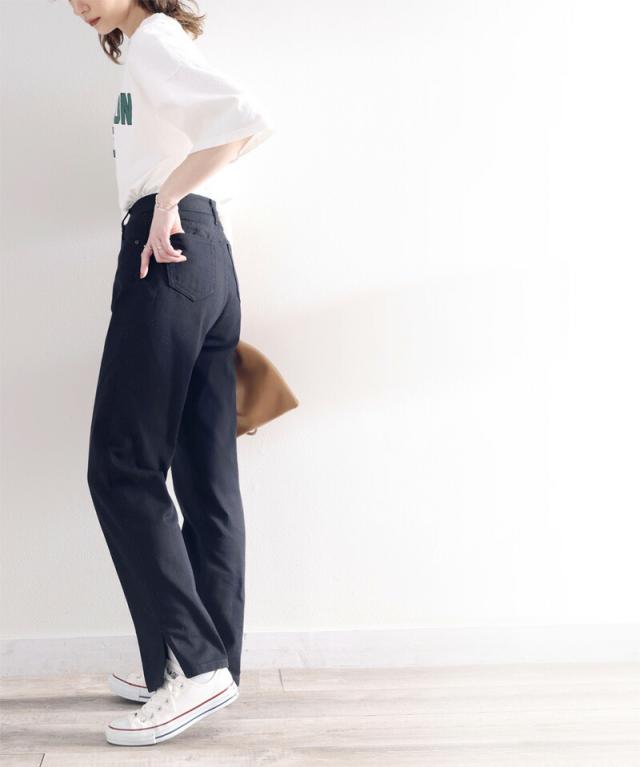 ハイウエスト×サイドスリットでスタイルアップできる一枚です。