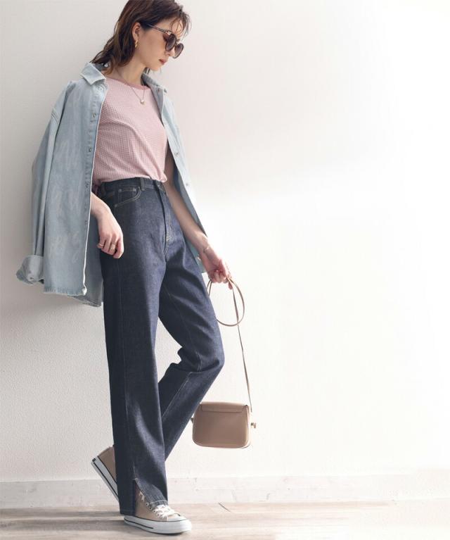 シーズンレスで着られるカジュアルの定番、デニムパンツ。