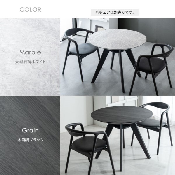 ダイニング テーブル 単品 90cm 食卓テーブル おしゃれ 大理石調ダイニングテーブル 円形 丸型 丸 テーブル 木目調 ブラック ホワイト シンプル [超大型商品]【商品番号:76600101】