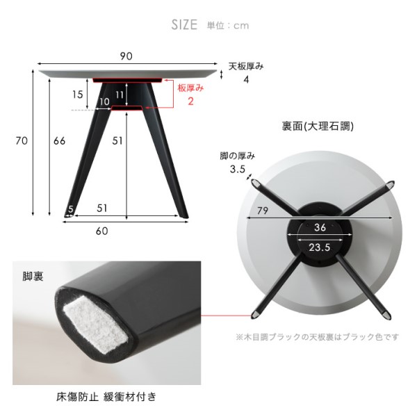 ダイニング テーブル 単品 90cm 食卓テーブル おしゃれ 大理石調ダイニングテーブル 円形 丸型 丸 テーブル 木目調 ブラック ホワイト シンプル [超大型商品]